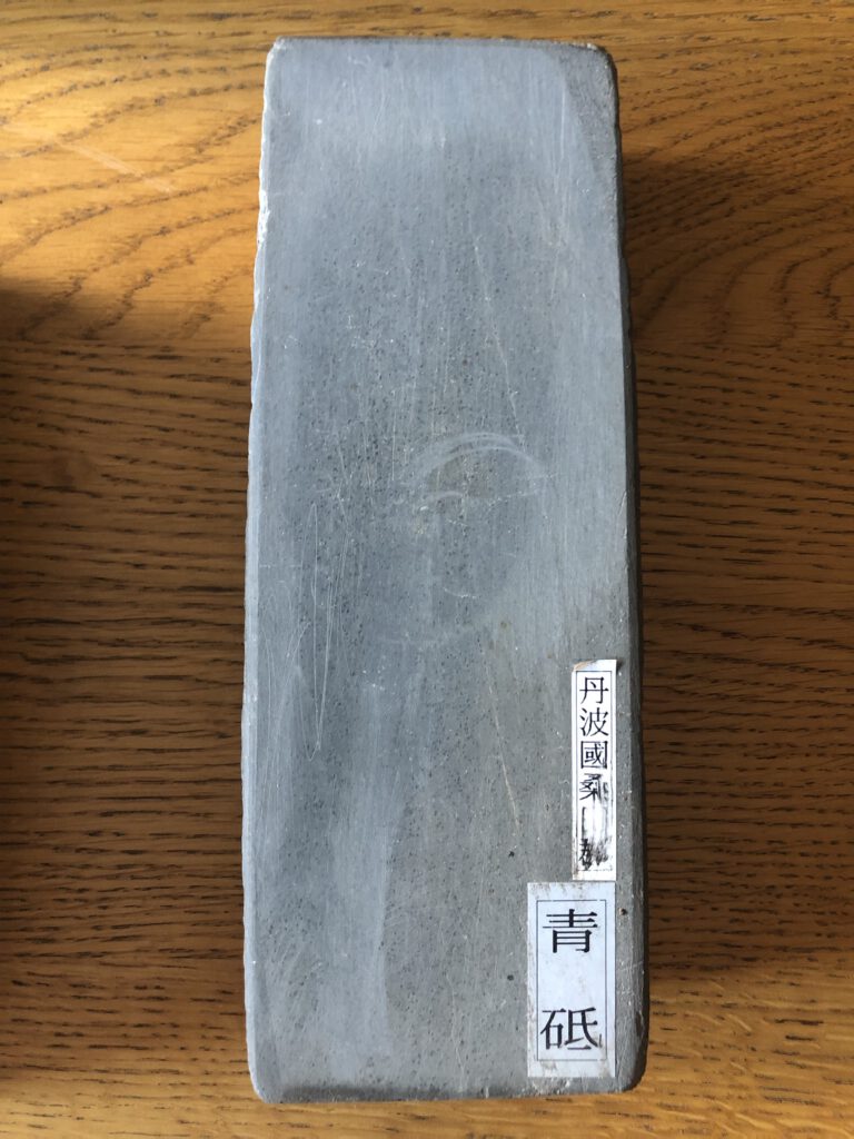 Polishing stones are used to finish the sharpening process of blades, allowing for finer cuts and a longer time of use before they need to be sharpened with rougher stones. The area where these stones have been most widely mined is in Kyôto, with slate being the main stone used. The above stone is an Aoto from Okabana in the Tanba region of Kyôto. These stones vary in fineness from medium rough to polishing, with uniformly coloured and harder stones pointing to finer results than striped, softer ones.